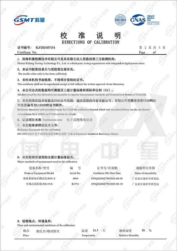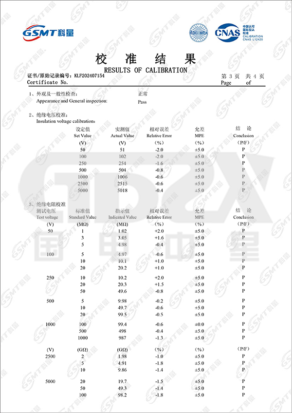 測(cè)量下限值0.1MΩ